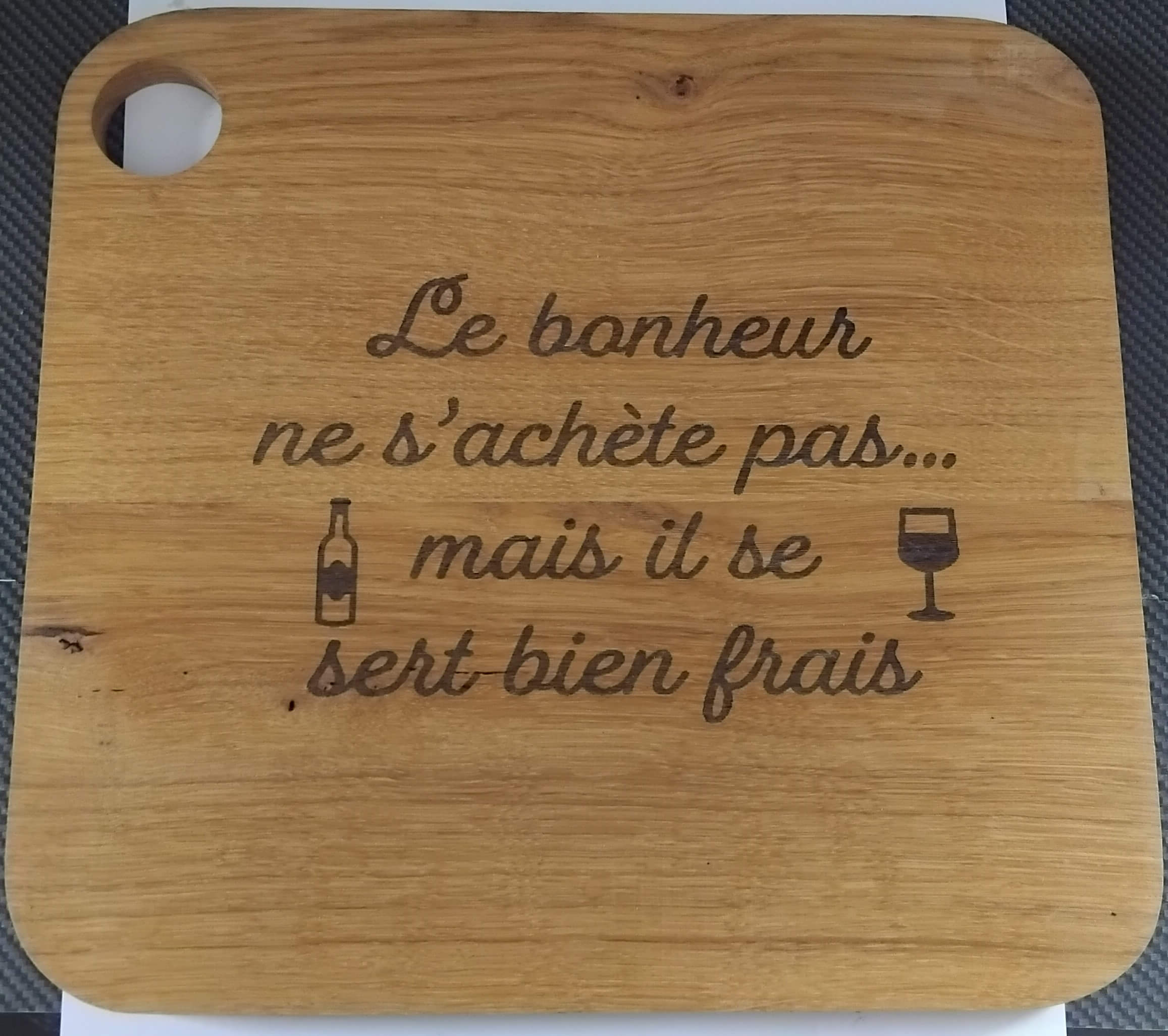 Grande planche apéro en bois 34×32 cm, généreuse et conviviale, idéale pour vos repas festifs. 100 % contact alimentaire et artisanale.