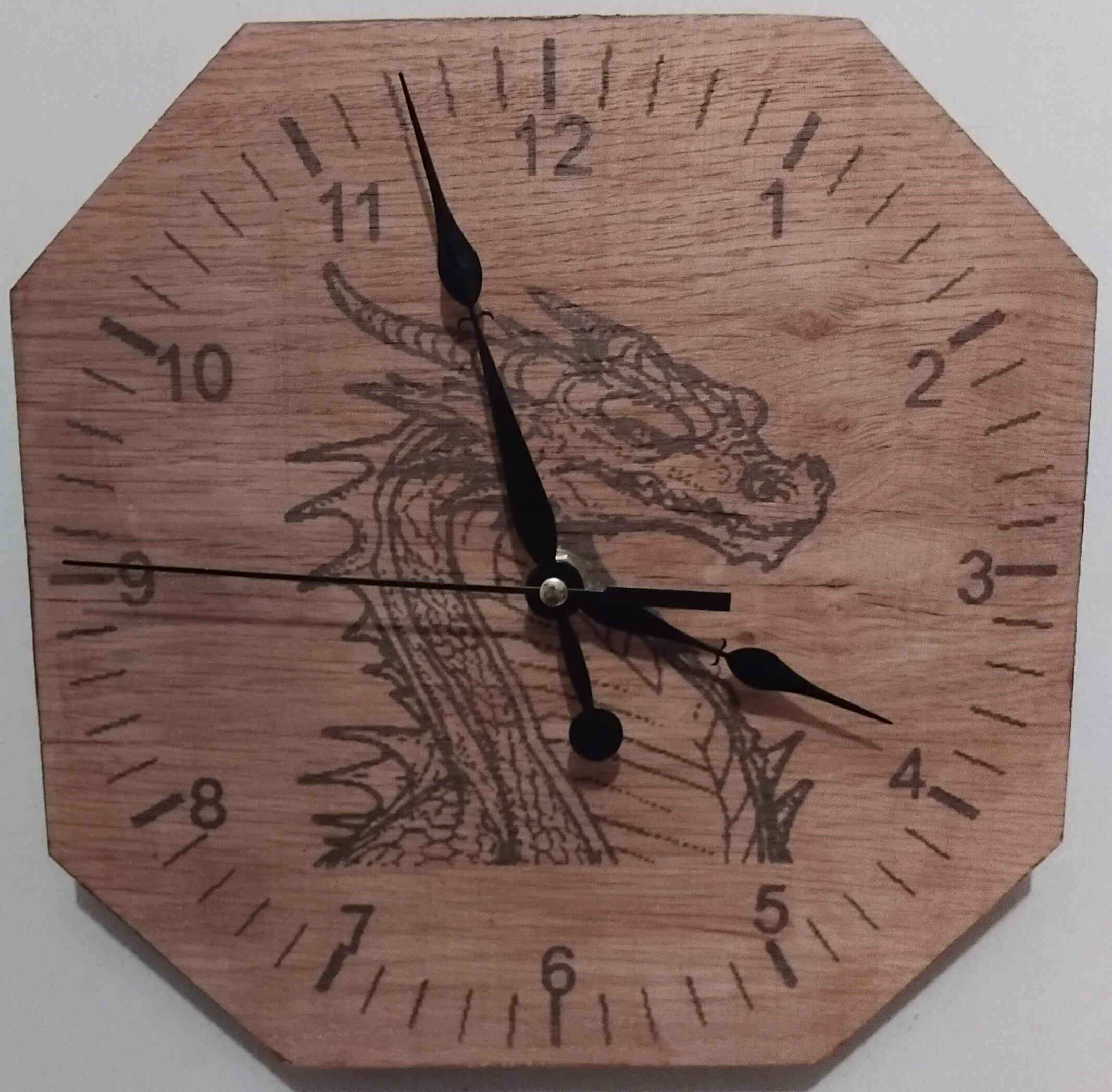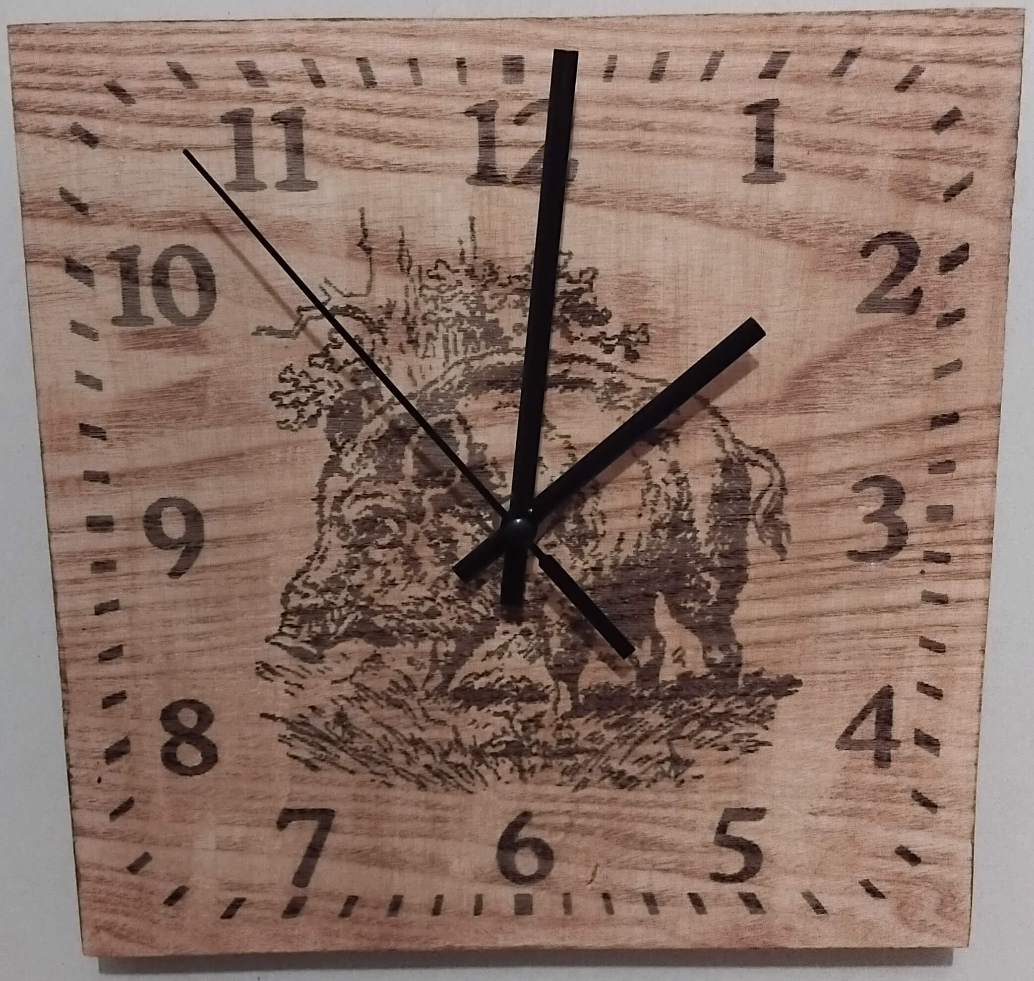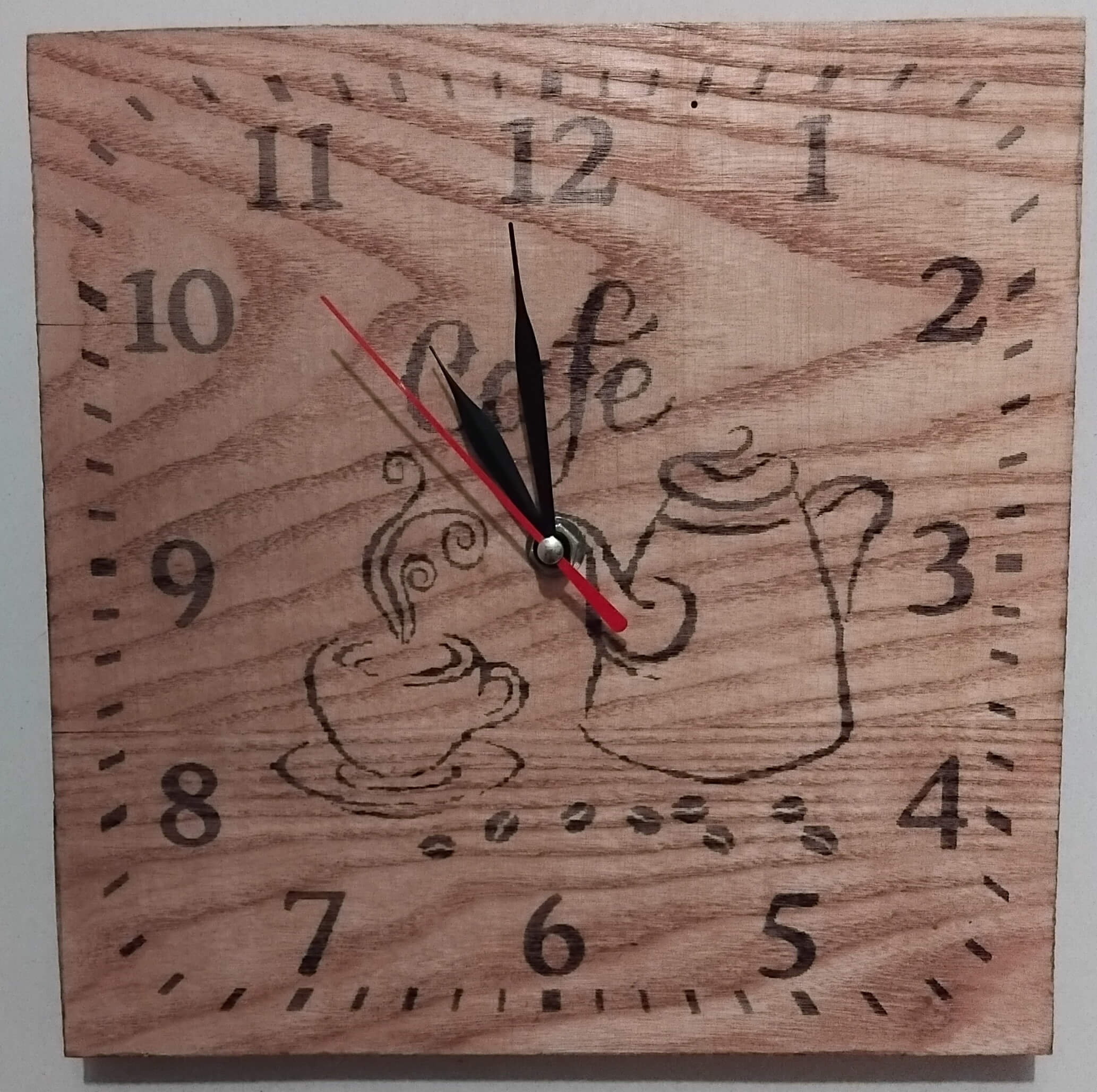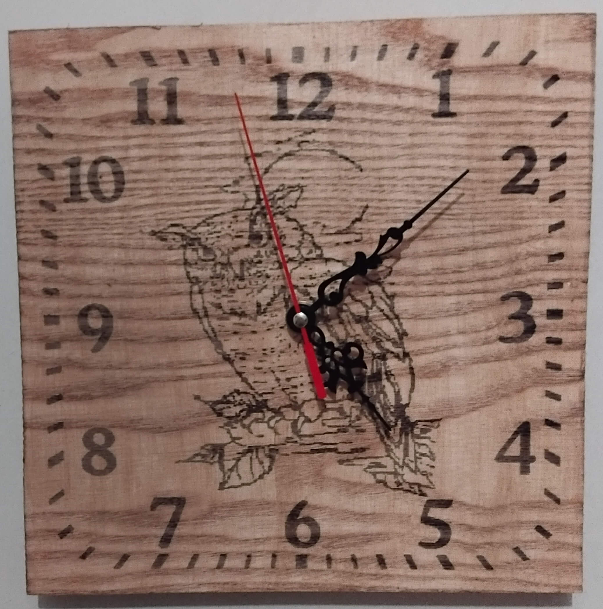 Horloge murale en bois avec mécanisme silencieux. Taille env. 22,5 x 22,5 cm. Formes au choix : carré, rond ou hexagonal. Aiguilles à monter soi-même.